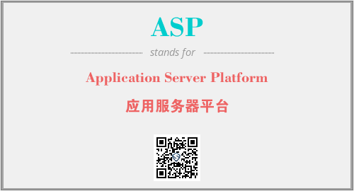 英文缩略词“ASP”经常作为“Application Server Platform”的英文缩写来使用,中文表示:“应用服务器平台”。本文将详细介绍英文缩写词ASP所代表英文单词,其对应的中文拼音、详细解释以及在英语中的流行度。此外,还有关于缩略词ASP的分类、应用领域及相关应用示例等。