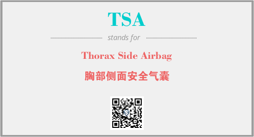 上述内容是“Thorax Side Airbag”作为“TSA”的缩写,解释为“胸部侧面安全气囊”时的信息,以及英文缩略词TSA所代表的英文单词,其对应的中文拼音、详细解释以及在英文中的流行度和相关分类、应用领域及应用示例等。