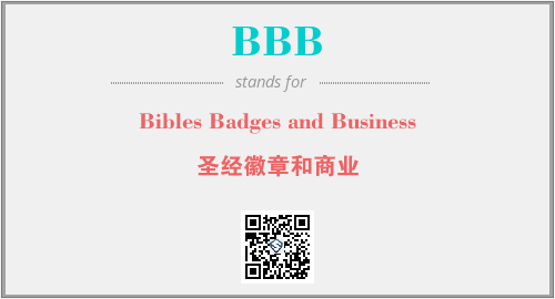 英文缩略词“BBB”经常作为“Bibles Badges and Business”的英文缩写来使用,中文表示:“圣经徽章和商业”。本文将详细介绍英文缩写词BBB所代表英文单词,其对应的中文拼音、详细解释以及在英语中的流行度。此外,还有关于缩略词BBB的分类、应用领域及相关应用示例等。