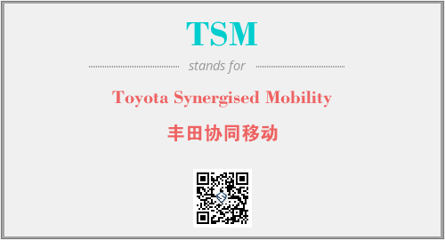 英文缩略词“TSM”经常作为“Toyota Synergised Mobility”的英文缩写来使用,中文表示:“丰田协同移动”。本文将详细介绍英文缩写词TSM所代表英文单词,其对应的中文拼音、详细解释以及在英语中的流行度。此外,还有关于缩略词TSM的分类、应用领域及相关应用示例等。