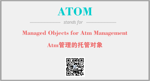 上述内容是“Managed Objects for Atm Management”作为“ATOM”的缩写,解释为“Atm管理的托管对象”时的信息,以及英文缩略词ATOM所代表的英文单词,其对应的中文拼音、详细解释以及在英文中的流行度和相关分类、应用领域及应用示例等。