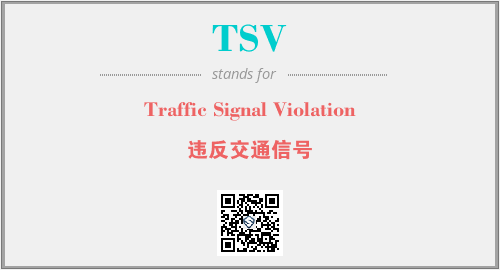 上述内容是“Traffic Signal Violation”作为“TSV”的缩写,解释为“违反交通信号”时的信息,以及英文缩略词TSV所代表的英文单词,其对应的中文拼音、详细解释以及在英文中的流行度和相关分类、应用领域及应用示例等。