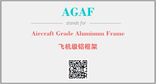 上述内容是“Aircraft Grade Aluminum Frame”作为“AGAF”的缩写,解释为“飞机级铝框架”时的信息,以及英文缩略词AGAF所代表的英文单词,其对应的中文拼音、详细解释以及在英文中的流行度和相关分类、应用领域及应用示例等。