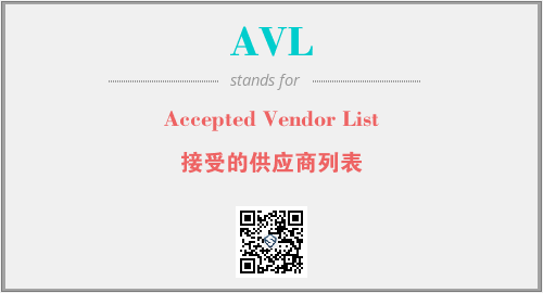 英文缩略词“AVL”经常作为“Accepted Vendor List”的英文缩写来使用,中文表示:“接受的供应商列表”。本文将详细介绍英文缩写词AVL所代表英文单词,其对应的中文拼音、详细解释以及在英语中的流行度。此外,还有关于缩略词AVL的分类、应用领域及相关应用示例等。