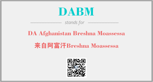 上述内容是“DA Afghanistan Breshna Moassessa”作为“DABM”的缩写,解释为“来自阿富汗Breshna Moassessa”时的信息,以及英文缩略词DABM所代表的英文单词,其对应的中文拼音、详细解释以及在英文中的流行度和相关分类、应用领域及应用示例等。