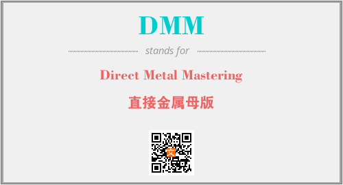 英文缩略词“DMM”经常作为“Direct Metal Mastering”的英文缩写来使用,中文表示:“直接金属母版”。本文将详细介绍英文缩写词DMM所代表英文单词,其对应的中文拼音、详细解释以及在英语中的流行度。此外,还有关于缩略词DMM的分类、应用领域及相关应用示例等。