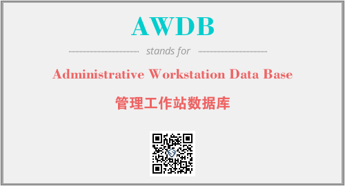 英文缩略词“AWDB”经常作为“Administrative Workstation Data Base”的英文缩写来使用,中文表示:“管理工作站数据库”。本文将详细介绍英文缩写词AWDB所代表英文单词,其对应的中文拼音、详细解释以及在英语中的流行度。此外,还有关于缩略词AWDB的分类、应用领域及相关应用示例等。