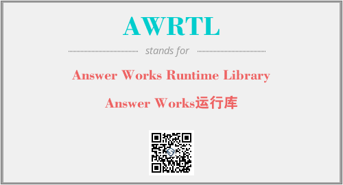 英文缩略词“AWRTL”经常作为“Answer Works Runtime Library”的英文缩写来使用,中文表示:“Answer Works运行库”。本文将详细介绍英文缩写词AWRTL所代表英文单词,其对应的中文拼音、详细解释以及在英语中的流行度。此外,还有关于缩略词AWRTL的分类、应用领域及相关应用示例等。