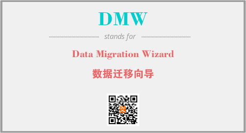 英文缩略词“DMW”经常作为“Data Migration Wizard”的英文缩写来使用,中文表示:“数据迁移向导”。本文将详细介绍英文缩写词DMW所代表英文单词,其对应的中文拼音、详细解释以及在英语中的流行度。此外,还有关于缩略词DMW的分类、应用领域及相关应用示例等。