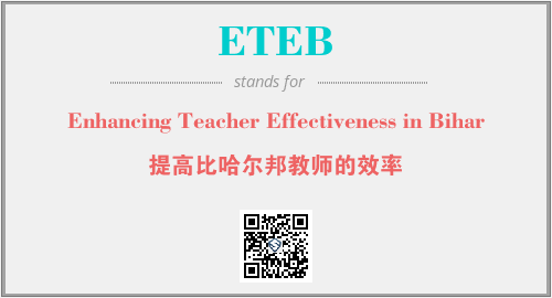 上述内容是“Enhancing Teacher Effectiveness in Bihar”作为“ETEB”的缩写,解释为“提高比哈尔邦教师的效率”时的信息,以及英文缩略词ETEB所代表的英文单词,其对应的中文拼音、详细解释以及在英文中的流行度和相关分类、应用领域及应用示例等。