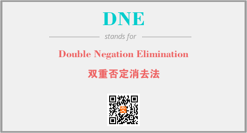 上述内容是“Double Negation Elimination”作为“DNE”的缩写,解释为“双重否定消去法”时的信息,以及英文缩略词DNE所代表的英文单词,其对应的中文拼音、详细解释以及在英文中的流行度和相关分类、应用领域及应用示例等。