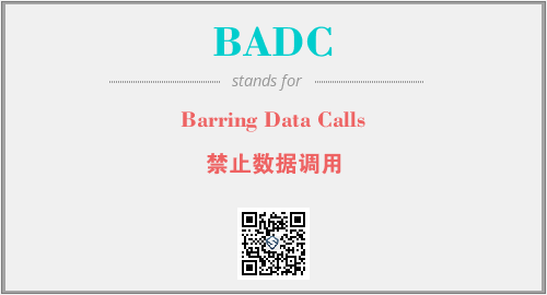 英文缩略词“BADC”经常作为“Barring Data Calls”的英文缩写来使用,中文表示:“禁止数据调用”。本文将详细介绍英文缩写词BADC所代表英文单词,其对应的中文拼音、详细解释以及在英语中的流行度。此外,还有关于缩略词BADC的分类、应用领域及相关应用示例等。