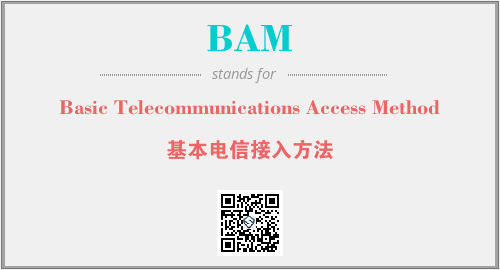 上述内容是“Basic Telecommunications Access Method”作为“BAM”的缩写,解释为“基本电信接入方法”时的信息,以及英文缩略词BAM所代表的英文单词,其对应的中文拼音、详细解释以及在英文中的流行度和相关分类、应用领域及应用示例等。