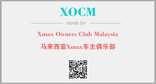 上述内容是“Xmax Owners Club Malaysia”作为“XOCM”的缩写,解释为“马来西亚Xmax车主俱乐部”时的信息,以及英文缩略词XOCM所代表的英文单词,其对应的中文拼音、详细解释以及在英文中的流行度和相关分类、应用领域及应用示例等。