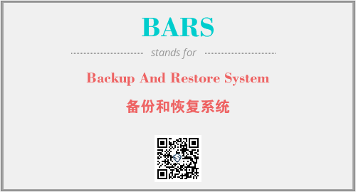 英文缩略词“BARS”经常作为“Backup And Restore System”的英文缩写来使用,中文表示:“备份和恢复系统”。本文将详细介绍英文缩写词BARS所代表英文单词,其对应的中文拼音、详细解释以及在英语中的流行度。此外,还有关于缩略词BARS的分类、应用领域及相关应用示例等。