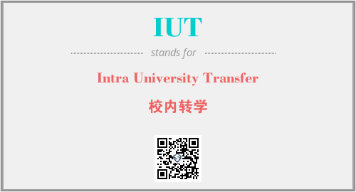 英文缩略词“IUT”经常作为“Intra University Transfer”的英文缩写来使用,中文表示:“校内转学”。本文将详细介绍英文缩写词IUT所代表英文单词,其对应的中文拼音、详细解释以及在英语中的流行度。此外,还有关于缩略词IUT的分类、应用领域及相关应用示例等。