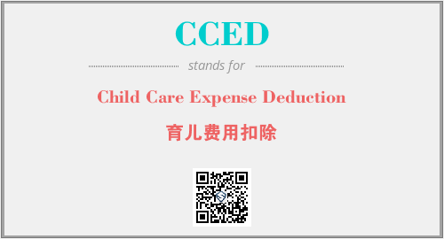 上述内容是“Child Care Expense Deduction”作为“CCED”的缩写,解释为“育儿费用扣除”时的信息,以及英文缩略词CCED所代表的英文单词,其对应的中文拼音、详细解释以及在英文中的流行度和相关分类、应用领域及应用示例等。
