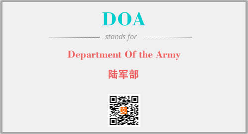 英文缩略词“DOA”经常作为“Department Of the Army”的英文缩写来使用,中文表示:“陆军部”。本文将详细介绍英文缩写词DOA所代表英文单词,其对应的中文拼音、详细解释以及在英语中的流行度。此外,还有关于缩略词DOA的分类、应用领域及相关应用示例等。