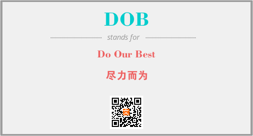 上述内容是“Do Our Best”作为“DOB”的缩写,解释为“尽力而为”时的信息,以及英文缩略词DOB所代表的英文单词,其对应的中文拼音、详细解释以及在英文中的流行度和相关分类、应用领域及应用示例等。