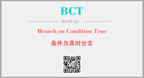 上述内容是“Branch on Condition True”作为“BCT”的缩写,解释为“条件为真时分支”时的信息,以及英文缩略词BCT所代表的英文单词,其对应的中文拼音、详细解释以及在英文中的流行度和相关分类、应用领域及应用示例等。
