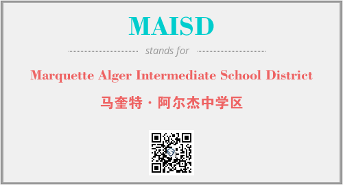 上述内容是“Marquette Alger Intermediate School District”作为“MAISD”的缩写,解释为“马奎特·阿尔杰中学区”时的信息,以及英文缩略词MAISD所代表的英文单词,其对应的中文拼音、详细解释以及在英文中的流行度和相关分类、应用领域及应用示例等。