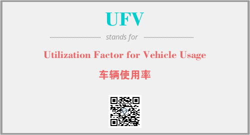 上述内容是“Utilization Factor for Vehicle Usage”作为“UFV”的缩写,解释为“车辆使用率”时的信息,以及英文缩略词UFV所代表的英文单词,其对应的中文拼音、详细解释以及在英文中的流行度和相关分类、应用领域及应用示例等。