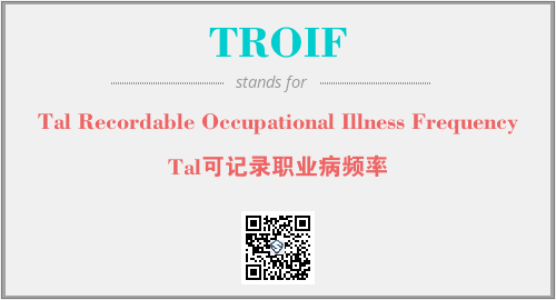 上述内容是“Tal Recordable Occupational Illness Frequency”作为“TROIF”的缩写,解释为“Tal可记录职业病频率”时的信息,以及英文缩略词TROIF所代表的英文单词,其对应的中文拼音、详细解释以及在英文中的流行度和相关分类、应用领域及应用示例等。