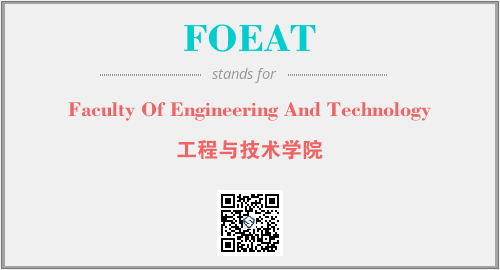 上述内容是“Faculty Of Engineering And Technology”作为“FOEAT”的缩写,解释为“工程与技术学院”时的信息,以及英文缩略词FOEAT所代表的英文单词,其对应的中文拼音、详细解释以及在英文中的流行度和相关分类、应用领域及应用示例等。