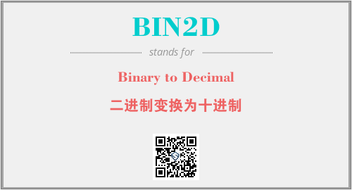 上述内容是“Binary to Decimal”作为“BIN2D”的缩写,解释为“二进制变换为十进制”时的信息,以及英文缩略词BIN2D所代表的英文单词,其对应的中文拼音、详细解释以及在英文中的流行度和相关分类、应用领域及应用示例等。