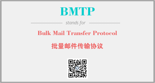 英文缩略词“BMTP”经常作为“Bulk Mail Transfer Protocol”的英文缩写来使用,中文表示:“批量邮件传输协议”。本文将详细介绍英文缩写词BMTP所代表英文单词,其对应的中文拼音、详细解释以及在英语中的流行度。此外,还有关于缩略词BMTP的分类、应用领域及相关应用示例等。