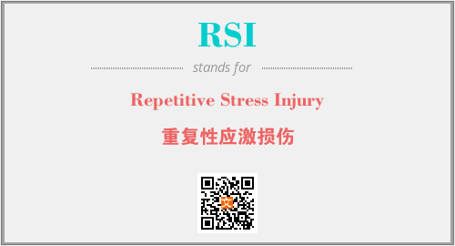 英文缩略词“RSI”经常作为“Repetitive Stress Injury”的英文缩写来使用,中文表示:“重复性应激损伤”。本文将详细介绍英文缩写词RSI所代表英文单词,其对应的中文拼音、详细解释以及在英语中的流行度。此外,还有关于缩略词RSI的分类、应用领域及相关应用示例等。