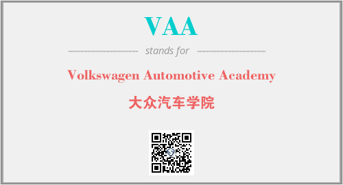 英文缩略词“VAA”经常作为“Volkswagen Automotive Academy”的英文缩写来使用,中文表示:“大众汽车学院”。本文将详细介绍英文缩写词VAA所代表英文单词,其对应的中文拼音、详细解释以及在英语中的流行度。此外,还有关于缩略词VAA的分类、应用领域及相关应用示例等。