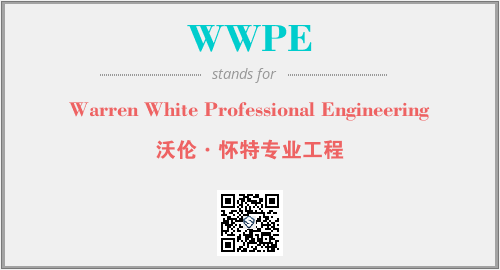 上述内容是“Warren White Professional Engineering”作为“WWPE”的缩写,解释为“沃伦·怀特专业工程”时的信息,以及英文缩略词WWPE所代表的英文单词,其对应的中文拼音、详细解释以及在英文中的流行度和相关分类、应用领域及应用示例等。