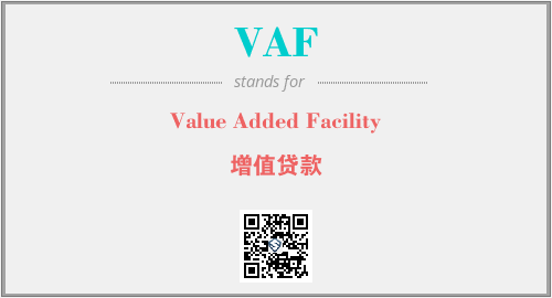 上述内容是“Value Added Facility”作为“VAF”的缩写,解释为“增值贷款”时的信息,以及英文缩略词VAF所代表的英文单词,其对应的中文拼音、详细解释以及在英文中的流行度和相关分类、应用领域及应用示例等。