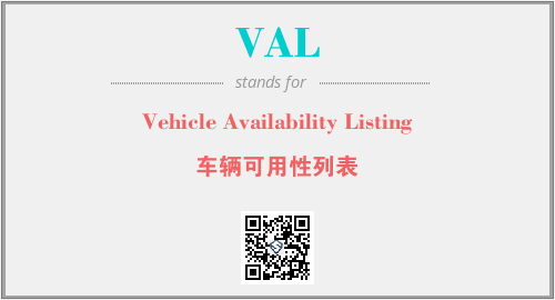 英文缩略词“VAL”经常作为“Vehicle Availability Listing”的英文缩写来使用,中文表示:“车辆可用性列表”。本文将详细介绍英文缩写词VAL所代表英文单词,其对应的中文拼音、详细解释以及在英语中的流行度。此外,还有关于缩略词VAL的分类、应用领域及相关应用示例等。