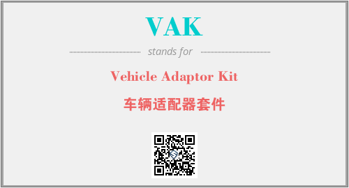 上述内容是“Vehicle Adaptor Kit”作为“VAK”的缩写,解释为“车辆适配器套件”时的信息,以及英文缩略词VAK所代表的英文单词,其对应的中文拼音、详细解释以及在英文中的流行度和相关分类、应用领域及应用示例等。