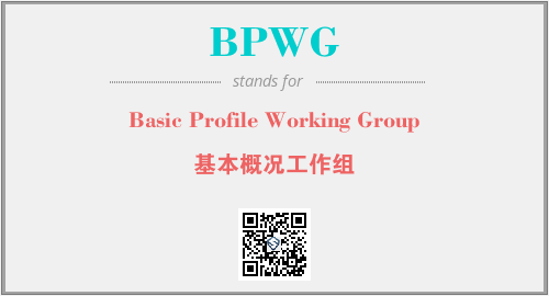 英文缩略词“BPWG”经常作为“Basic Profile Working Group”的英文缩写来使用,中文表示:“基本概况工作组”。本文将详细介绍英文缩写词BPWG所代表英文单词,其对应的中文拼音、详细解释以及在英语中的流行度。此外,还有关于缩略词BPWG的分类、应用领域及相关应用示例等。