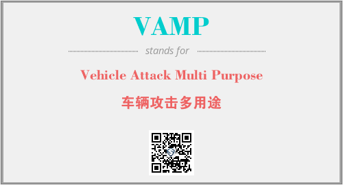 上述内容是“Vehicle Attack Multi Purpose”作为“VAMP”的缩写,解释为“车辆攻击多用途”时的信息,以及英文缩略词VAMP所代表的英文单词,其对应的中文拼音、详细解释以及在英文中的流行度和相关分类、应用领域及应用示例等。