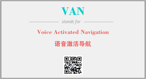上述内容是“Voice Activated Navigation”作为“VAN”的缩写,解释为“语音激活导航”时的信息,以及英文缩略词VAN所代表的英文单词,其对应的中文拼音、详细解释以及在英文中的流行度和相关分类、应用领域及应用示例等。