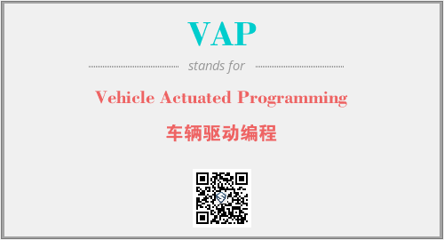 以上为Vehicle Actuated Programming英文缩略词VAP的中文解释,以及该英文缩写在英语的流行度、分类和应用领域方面的信息。