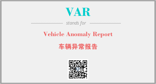 上述内容是“Vehicle Anomaly Report”作为“VAR”的缩写,解释为“车辆异常报告”时的信息,以及英文缩略词VAR所代表的英文单词,其对应的中文拼音、详细解释以及在英文中的流行度和相关分类、应用领域及应用示例等。