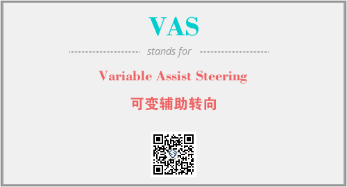 英文缩略词“VAS”经常作为“Variable Assist Steering”的英文缩写来使用,中文表示:“可变辅助转向”。本文将详细介绍英文缩写词VAS所代表英文单词,其对应的中文拼音、详细解释以及在英语中的流行度。此外,还有关于缩略词VAS的分类、应用领域及相关应用示例等。