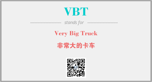 英文缩略词“VBT”经常作为“Very Big Truck”的英文缩写来使用,中文表示:“非常大的卡车”。本文将详细介绍英文缩写词VBT所代表英文单词,其对应的中文拼音、详细解释以及在英语中的流行度。此外,还有关于缩略词VBT的分类、应用领域及相关应用示例等。
