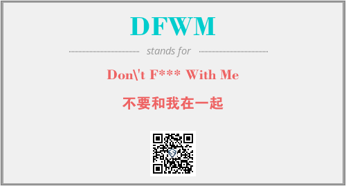 上述内容是“Don\'t F*** With Me”作为“DFWM”的缩写,解释为“不要和我在一起”时的信息,以及英文缩略词DFWM所代表的英文单词,其对应的中文拼音、详细解释以及在英文中的流行度和相关分类、应用领域及应用示例等。