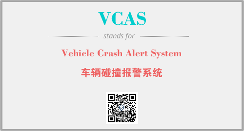 英文缩略词“VCAS”经常作为“Vehicle Crash Alert System”的英文缩写来使用,中文表示:“车辆碰撞报警系统”。本文将详细介绍英文缩写词VCAS所代表英文单词,其对应的中文拼音、详细解释以及在英语中的流行度。此外,还有关于缩略词VCAS的分类、应用领域及相关应用示例等。