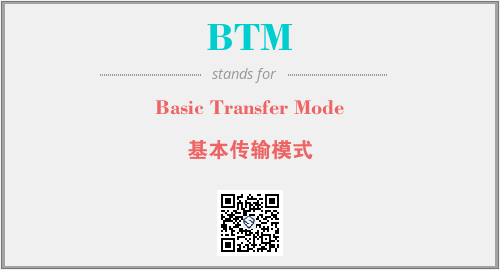 上述内容是“Basic Transfer Mode”作为“BTM”的缩写,解释为“基本传输模式”时的信息,以及英文缩略词BTM所代表的英文单词,其对应的中文拼音、详细解释以及在英文中的流行度和相关分类、应用领域及应用示例等。