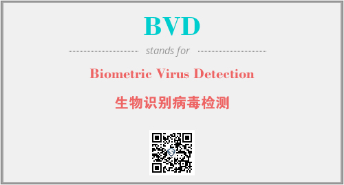 上述内容是“Biometric Virus Detection”作为“BVD”的缩写,解释为“生物识别病毒检测”时的信息,以及英文缩略词BVD所代表的英文单词,其对应的中文拼音、详细解释以及在英文中的流行度和相关分类、应用领域及应用示例等。