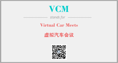 上述内容是“Virtual Car Meets”作为“VCM”的缩写,解释为“虚拟汽车会议”时的信息,以及英文缩略词VCM所代表的英文单词,其对应的中文拼音、详细解释以及在英文中的流行度和相关分类、应用领域及应用示例等。