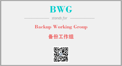 英文缩略词“BWG”经常作为“Backup Working Group”的英文缩写来使用,中文表示:“备份工作组”。本文将详细介绍英文缩写词BWG所代表英文单词,其对应的中文拼音、详细解释以及在英语中的流行度。此外,还有关于缩略词BWG的分类、应用领域及相关应用示例等。