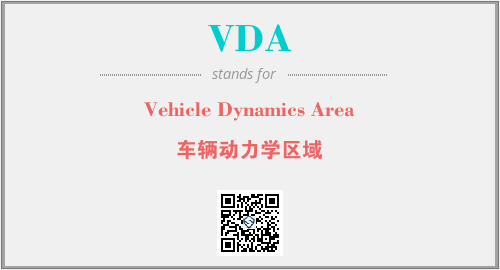 上述内容是“Vehicle Dynamics Area”作为“VDA”的缩写,解释为“车辆动力学区域”时的信息,以及英文缩略词VDA所代表的英文单词,其对应的中文拼音、详细解释以及在英文中的流行度和相关分类、应用领域及应用示例等。